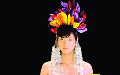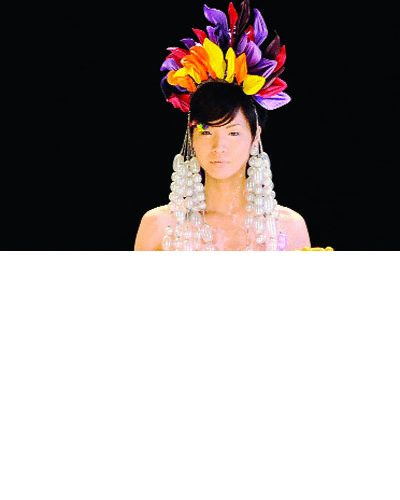 عارضات يقدمن ابتكارات للمصممين الشابين أيومي ميتسوكاني وري هوسوكاي، خلال مسابقة «سو إن» للأزياء في جامعة بونكا للأزياء في العاصمة اليابانية طوكيو أول من أمس.