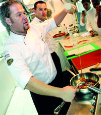 وقدم الجنوب إفريقي الشيف نيكولاس فان دير فالت، طريقة العمل على السكر، وكيف تتحوّل تلك المادة إلى قطع جميلة، بمجرد وضعها في قوالب، كما أعطى السكر كثيراً من الألوان، الأمر الذي أغنى الأشكال التي يعمل عليها. وعمل الشيف، الذي قدم الورشة، بتقنيات مختلفة، فقد يضع السكر في قوالب لتجمد، أو يسكبها على أوراق السيليكون الخاصة، فلا تلتصق بالورق، وتنتج أشكالاً حرة ومتباينة الألوان، فتنتهي وكأنها لوحة تشكيلية.