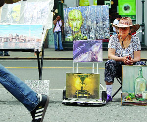 مجموعة من باعة ورسامي اللوحات الفنية الجوالين يحتلون مناطق مختلفة حول حديقة «سنترال بارك» في «يونيون سكوير» في مدينة نيويورك الأميركية، وتنوي إدارة عمدة نيويورك مايكل بلومبيرغ تقليص عدد الباعة في المنطقة بنسبة 75٪، بينما لا يحتاج باعة ما يسمى «الأعمال التعبيرية» إلى تصريح للبيع في ما يعرف بالمعارض الخارجية