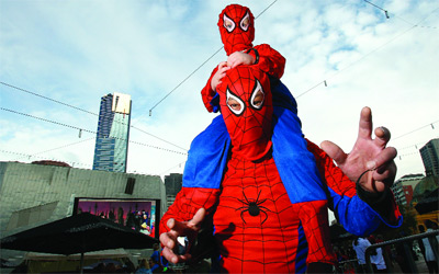 حطمت مدينة ملبورن الأسترالية رقماً قياسياً لأعداد الأبطال الخارقين الذين يجتمعون في مكان واحد، متفوقة على بريطانيا حاملة اللقب.وذكرت صحيفة «هيرالد صن» الأسترالية أن 1245 شخصاً يرتدون زي أبطال خارقين احتشدوا أمس في ميدان «فيديرايشن سكوير» في ملبورن، فأحرزوا الرقم القياسي الذي كانت تحمله بريطانيا يوم احتشد فيها 1091 شخصاً يرتدون أزياء مماثلة.