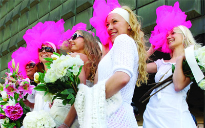 موكب شقراوات جاب شوارع ريغا عاصمة لاتفيا، أول من أمس، خلال مهرجان مخصص للشقراوات.