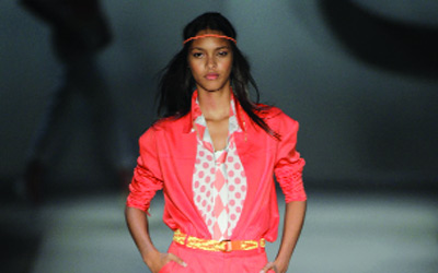 الممثلة البرازيلية كارولينا ديكمان ومجموعة من العارضات يقدمن آخر ابتكارات دار الأزياء «تي إن جي» لربيع وصيف 2010 - ،2011 خلال أسبوع ريو دي جانيرو للموضة أول من أمس.