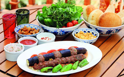 3 _ يشوى اللحم و الباذنجان و يقدم ساخنا .