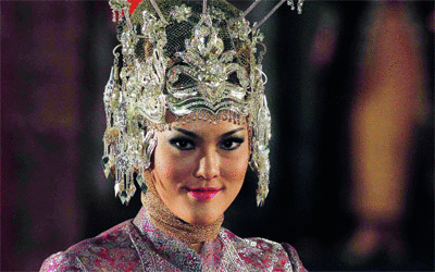 عارضات يقدمن مجموعة من الأزياء لمصممين مختلفين خلال مهرجان الموضة الإسلامية الذي نظم في العاصمة الإندونيسية جاكرتا الأسبوع الماضي.
