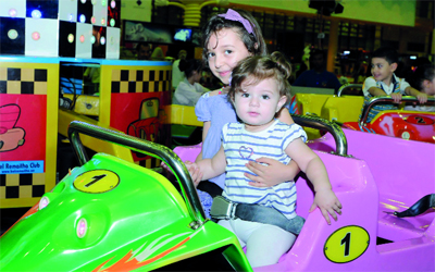 وبعد أن استمتعت آية وجود بلعبة السيارات، أمسكت آية بيد أختها وأخذت تنتقل معها في أرجاء عالم مدهش لتلعبا معا، وتنتقلا من هذه اللعبة إلى تلك، وهما في غاية المرح والسرور، وابتسامة طفولية رائعة ترتسم على وجهيهما الجميلين.