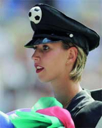 عارضات يقدّمن ابتكارات وتصاميم مستوحاة من كرة القدم قبيل المباراة النهائية لكأس العالم في كرة القدم النسائية «فيفا يو20» بين ألمانيا ونيجيريا في مدينة بيلفيلد الألمانية أول من أمس.