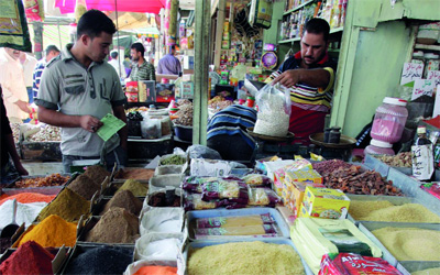متسوّقون عراقيون يبتاعون الأكلات والمواد الغذائية المختلفة استعداداً لشهر رمضان في العاصمة العراقية بغداد، أول من أمس، بينما تعتبر الحلويات والبهارات والمكسرات من أكثر المواد الغذائية طلباً خلال الشهر.
