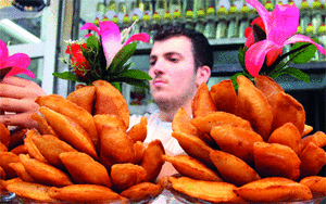 حلويات شرقية متنوعة توفرها محال صناعة وبيع الحلويات الشرقية في سوق الميدان في العاصمة السورية دمشق أول من أمس، إذ يزيد خلال شهر رمضان بيع وشراء الحلويات الشرقية المصاحبة لمآدب الإفطار المتنوعة.