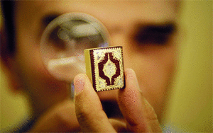 مصحف يبلغ طوله 2.4 سنتميتر، وعرضه 1.9 سنتيمتر، ويضم 604 صفحات بالحبر المذهب، ويقول صاحبه اللبناني حسن عبدربه إنه أصغر مصحف في العالم.