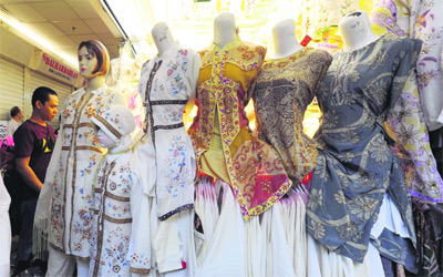 إندونيسيون يتخيرون أزياء من متاجر عدة في العاصمة جاكرتا التي يؤمها كثيرون من سكان الأقاليم الأخرى، استعداداً لعيد الفطر السعيد.
