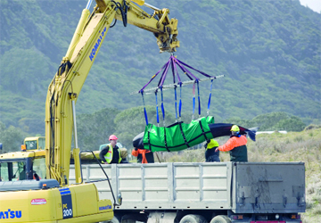 ذكرت تقارير إخبارية أنه جرى نقل 24 من الحيتان الطيارة (بايلوت) عدا ثلاثة منها كانت قد جنحت عند شاطئ نيوزيلندي ضربته الأمواج في شاحنات أمس لمسافة 50 كيلومتراً إلى مياه اكثر هدوءاً في محاولة لانقاذها. ومازال يتعين رؤية ما اذا كان الـ21 حوتاً، التي تم نقلها الى مياه المحيط بعد ما وصفت بأنها اكبر محاولة على الاطلاق للنقل البري للحيتان، ستظل على قيد الحياة في شاطئ باراوا في اقليم نورثلاند.
