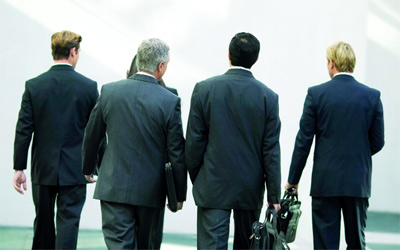 قاعدة «الأعمال»: في المستويات القيادية المتوسطة تقتضي قواعد الملبس ارتداء الرجال بذلة داكنة اللون تتكون من قطعتين أو ثلاث قطع مع قميص وربطة عنق. وتقول لوديمان «البذلة المكونة من ثلاث قطع توحي دائماً بالطابع الرسمي». ويسمح بارتداء قمصان وربطات عنق بدرجات ألوان الباستيل. وتتطلب هذه الطلة أن ترتدي النساء بذلة حريمي أو تايير كلاسيكياً مع بلوزة ملونة. وفي المستويات القيادية العالية أو في حالة مناسبات العمل الرسمية تسري القاعدة التالية على الرجال: بذلة من ثلاث قطع مع أزرار الأساور.