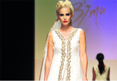 وبألوان هادئة وخامات منسابة، انطلق اليوم الرابع من الأسبوع أول من أمس، بعرض للمصممة الباكستانية بسما أحمد الفائزة بمسابقة «المواهب الناشئة» سابقاً، التي ركزت بشكل كبير على قماش الدانتيل الشانتيلي الفرنسي الفاخر، الذي توزع بين التصاميم بتركيز متفاوت، تمازج وانساب مع خامات أخرى هادئة، في قصات مطورة للتصاميم التقليدية المستوحاة من ثقافة المصممة، وهي القصات التي رغم المحاولات الحثيثة للمصممين لابتكار الجديد منها، إلا أنها دائماً تقع تحت دائرة التقليدي، وذلك للتركيز المستمر والدائم على التقنيات والأفكار التقليدية للمشغولات، بينما غلبت على مجموعتها الألوان الهادئة بين العاجي، والخمري، والأخضر، والأزرق، والبني، والبنفسجي، والرمادي اللؤلؤي.