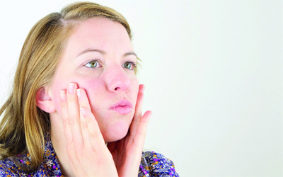 «ثنيات الغضب» لإزالة ثنيات الغضب بين الحاجبين: يتم وضع إصبع أو إصبعين فوق كل حاجب، للحيلولة دون تكون تجاعيد عند شد الحاجبين. وبعد ذلك يتم ضم الحاجبين سوياً، على أن يستمر شدهما لست ثوانٍ. وبعد ذلك يتم إرخاؤهما لمدة لا تقل عن 10 ثوانٍ. أما لإزالة تجاعيد العين: غالباً ما تكون منطقة العين مشدودة جداً. لذا يكون من المفيد في بادئ الأمر أداء تمرين للاسترخاء، إذ يتم إمساك الحاجبين من الحافة الداخلية بين الإبهام والسبابة ورفعهما لأعلى ثم تركهما. ويبدأ هذا الشد من الحافة الداخلية للحاجب ثم ينتقل من منطقة لأخرى وصولاً إلى الحافة الخارجية. وبعد ذلك يتم عمل شكل نظارة على منطقة العينين بإصبعي الإبهام والسبابة، بحيث يستقر الإبهام على العظمة الوجنية ويكون السبابة أسفل الحاجب. وفي تلك الأثناء يمكن شد الجلد بمنتهى الرفق واللين إلى أعلى وأسفل. وبعد ذلك يتم الغمز بالعين 10 إلى 20 مرة ضد مقاومة الأصابع، وأخيراً يتم إرخاء الحاجبين مجدداً. |