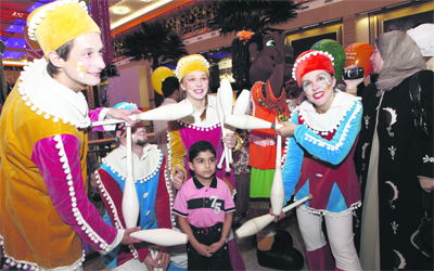 عروض المهرجين تجتذب رواد المراكز المختلفة. من المصدر