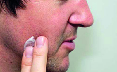 وإلى جانب المؤثرات البيئية تتسبب حلاقة الذقن اليومية في إجهاد البشرة، لذا ينصح فرينغس الرجال بتنظيف وجوههم يومياً باستعمال جل أو زيت أو لبن تنظيف. وأضاف فرينغس «ينبغي معالجة الجلد بمستحضر مضاد للبكتيريا، ولهذا الغرض يمكن استعمال لوشن للوجه بشرط ألا تتجاوز نسبة الكحول والإضافات المضادة للبكتيريا 10 إلى 15٪ من تركيبته».