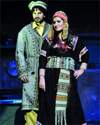 عارضون يرتدون،أول من أمس، أزياء تقليدية خلال مهرجان في مدينة بيشاور الباكستانية.