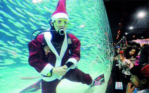 غواصان يرتديان زي سانتا كلوز (بابا نويل) في حوض كويكس للأسماك في العاصمة الكورية الجنوبية سيؤول، خلال الاحتفالات بأعياد الميلاد.