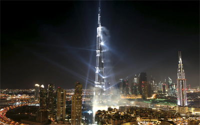 لن يكون استقبال العام الجديد عند أطول بناء في العالم حدثاً عادياً. وسيكون سكان دبي وآلاف السياح وزوارها على موعد مع ليلة لا تنسى وسط مهرجان من الألوان والأضواء في أجواء اجتماعية مميزة قرب «برج خليفة»، هذا الصرح الهندسي والمعماري الأكبر في العالم. تتزامن هذه الاحتفالات مع الذكرى السنوية الأولى لتدشين «برج خليفة»، وتنطلق الاحتفالات من برج خليفة، مع العد التنازلي للسنة الجديدة، بمرافقة عروض الأضواء والليزر والألعاب النارية. كما ستذهل «دبي فاونتن»، أطول النوافير الاستعراضية في العالم، زوّار القلب الجديد للمدينة، بعروض الماء والنار الساحرة.