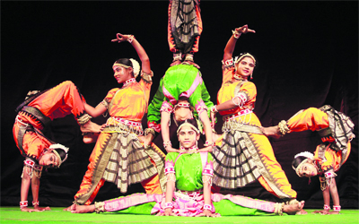 فتيات يؤدين رقصة تقليدية على هامش مهرجان الفنون القبلية في مدينة بوبال الهندية.