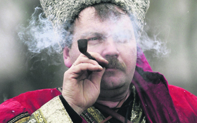 مجموعة من الروس يرتدون الملابس التقليدية من الفترة القوقازية، ويؤدون عروضا قتالية تقليدية من تلك الفترة بالسيوف والبنادق، خلال احتفالات استعدادا لمهرجان الأرثوذوكس خارج مدينة روستوف أون دون، أول من أمس، حيث تتضمن الاحتفالات في هذا اليوم السباحة في المياه المتجمدة كفعل رمزي لغسل أجسادهم من الآثام.