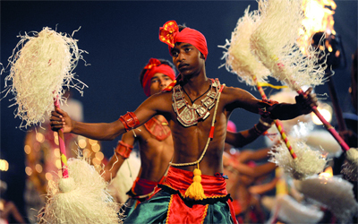 راقصون وبائعون وحجاج سريلانكيون يتحلقون حول معبد كيلانيا البوذي نهاية الأسبوع الماضي، حيث يتجمع مئات الأفراد في احتفال الفيل السنوي، وذلك قبل ليلة من اكتمال القمر، إذ يؤدي الراقصون مجموعة من الرقصات المبهجة بملابس تقليدية ملونة ولماعة، إضافة إلى عروض نفخ النار والعزف على الآلات الموسيقية في شوارع مدينة كيلانيا.