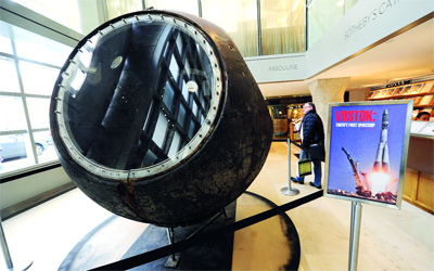 وستباع مركبة الفضاء فوستوك 3 كيه.ايه-2 في صالة مزادات سوذبي في نيويورك، في 12 من أبريل المقبل، في الذكرى السنوية الـ50 لرحلة غاغارين.