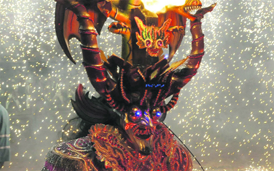 مجموعة من الراقصين والمغنين يؤدون وصلات فنية خلال احتفالات كرنفال «أورورو» في واحدة من المدن البوليفية التي تبعد عن العاصمة لاباز،