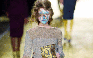 عارضات باكيات لم تكتف مصممة الأزياء البريطانية فيفيان ويستوود، خلال عرض أزيائها لخريف وشتاء 2011-2012 للملابس الجاهزة خلال أسبوع باريس للموضة، بأن تعكس بصمتها المتطرفة على التصاميم فقط، بل قررت أن تضيف المزيد من ذلك عبر ماكياج عيون بدا قوياً وكثيفاً بلونه الأسود العميق، ولكن ممسوح إلى الأسفل نزولا على الخد والأنف، حيث بدون كما لو بكين، ليسيل كحلهن على وجناتهن، بينما تطرفت الفكرة بشكل أكبر لتنتقل الخربشات السوداء على الشفاه والأنوف، ولطخات على الجباه وأجزاء من الوجه باللون الأزرق السماوي، والأخضر الفستقي، والفضي اللماع. |
