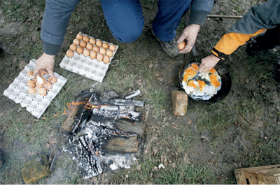 بوسنيون يعدون أطباق البيض المقلي والسندويشات خلال «مهرجان البيض المخفوق» في مدينة كيمبوريادا بالقرب من نهر البوسنة، يوم الأحد الماضي، حيث يجتمع الأفراد في هذا اليوم بالقرب من النهر لإعداد طبقهم المفضل من البيض ومشاطرة الآخرين وجبة الإفطار مع الأصدقاء والزوار، وهي طريقتهم التقليدية للاحتفال بأول أيام موسم الربيع.