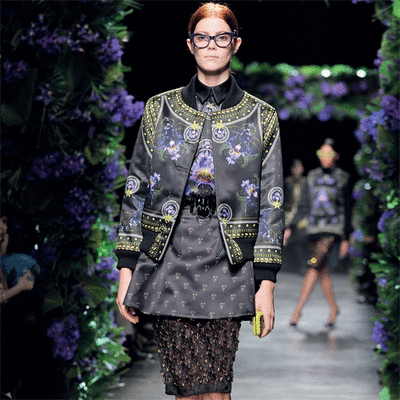 «أورغانزا شفافة» الفساتين القصيرة المتموجة، والتنانير الكلاسيكية الطويلة حتى نهاية الركبة، وذات الأذيال المتموجة، مخملية كانت أو حريرية، في مجموعة «جيفنشي» الجديدة اجتمعت كلها على فكرة وجود بطانة طويلة من الأورغانزا الشفافة تحتها، والتي انسدلت بلونها السادة غالباً، بينما تزينت بحاشية مطبعة ملونة، بينما تنوعت التنانير بين الصوفية، والجلدية، والمخملية، والحريرية، مع طبقات الأورغانزا في حاشيتها، وهي الخامات التي لم تخرج عنها المجموعة بشكل عام. |