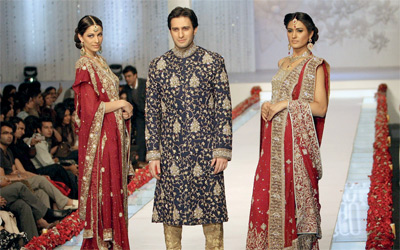 من عروض أسبوع موضة العرائس في مدينة كراتشي الباكستانية الذي اختتم فعالياته أخيراً.