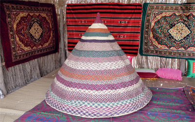 قالت مريم عبيد علي، احدى المشاركات في فعالية الحرف اليدوية «من خلال الخوص نصنع الكثير من الأغراض التي تستخدم في حياتنا اليومية، ومنها مثلاً (الشلبدان)، الذي يستخدم لوضع المكحلة بداخله»، مشيرة إلى أن اوراق السعف التي تصبغ بألوان متباينة ترتبط بالتراث الإماراتي.