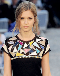تحولت ملابس السباحة في مجموعة «شانيل» إلى واحدة أقرب إلى الفساتين الأنيقة، بقصاتها الراقية المتقنة، وتحولها وخطوطها الراسمة للجسد، والمزينة بالأزرار المذهبة تارة أو خطوط، التي اعتمدت على فكرة المزج الواضح بين القسمين الأسود والأبيض، والكحلي الداكن المزين بحبات القصب الفضية ودبوس من الكريستال الأبيض المزين لحزام وهمي، تحت سترة «شانيلية» مربعة قصيرة، ولبس سباحة آخر من جزأين أقرب إلى القميص الضيق الطويل المنقسم من المركز، وآخر أسود مزين بدبوس أسفل الصدر بقصة تحدد تلك المنطقة بحدود بيضاء كريمية.
