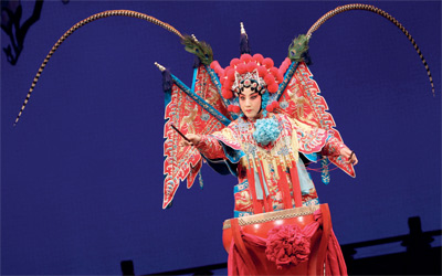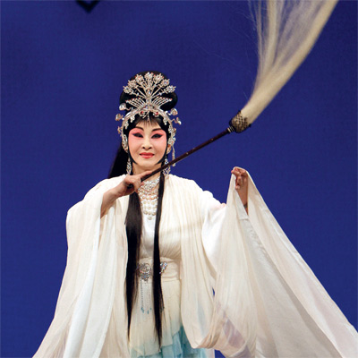 ممثلتان صينيتان خلال بروفة لتقديم أوبرا «أسطورة سيدة القصر» التي ستقدم اليوم على مسرح في العاصمة التايوانية تايبيه.