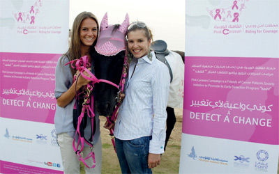 تبرعت حملة «القافلة الوردية» بتجهيزات خيول وردية اللون، سبق للقافلة استخدامها خلال رحلة الأيام الـ10 حول الإمارات في ابريل الماضي بهدف زيادة الوعي حول مرض سرطان الثدي، وتشجيع سكان الإمارات على المشاركة بفاعلية في الفحوص.