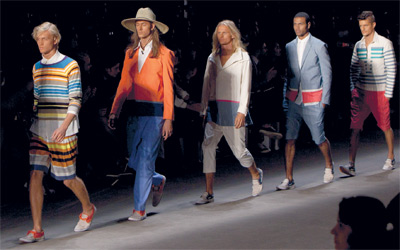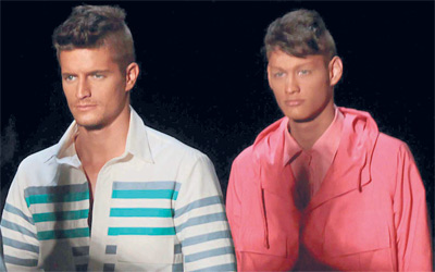 مجموعة من العارضين يقدمون آخر ابتكارات دار الأزياء البرازيلية «آر.غروف» خلال أسبوع ريو ديجينيرو للموضة في مدينة ريوديجينيرو البرازيلية أول من أمس.