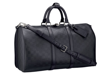 حقيبة سفر رجالية يدوية صغيرة من الداميير ، مناسبة للسفر ولتقديمها هدية في يوم الأب ، إضافة إلى علاقة مفاتيح فضية أنيقة تحمل اسم وشعار العلامة التجاية ،