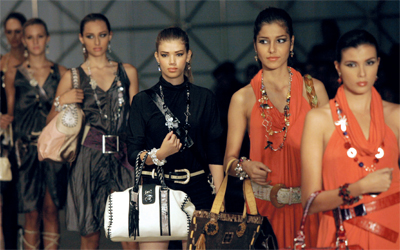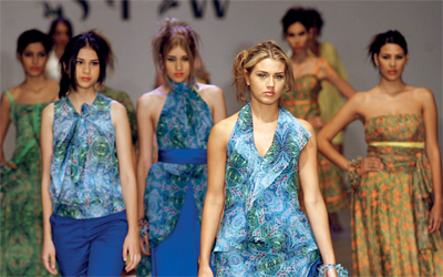 من فعاليات أسبوع سانتاندير للموضة في مدينة بوكارامانغا الكولومبية، الذي ضم أزياء من مجموعة ربيع/ صيف ،2012 أول من أمس.