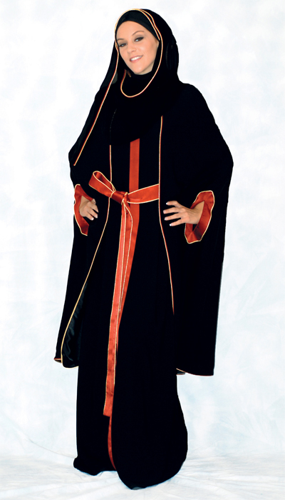 عباءة أنيقة ذات قصة مبتكرة معززة بوشاح متصل وحزام حريري، وتتزين حدودها بالخيوط الذهبية من تصميم الإماراتية أمل مراد، وتبدأ أسعار العباءات من 1500 درهم، وتتوافر في كل من «مردف سيتي سنتر» و«ساكس فيفث أفنيو» في مركز برجمان للتسوق في دبي.