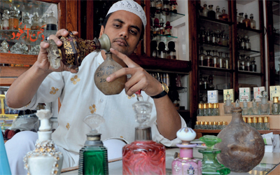 بائعو عطور تقليدية في مدينة حيدر آباد الهندية، يحضرون عطورهم التقليدية التي يقبل عليها المسلمون في شهر رمضان المبارك، ويحرصون على التطيب بها قبل أداء الصلوات.
