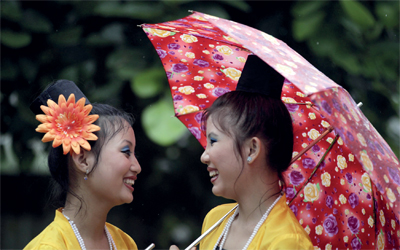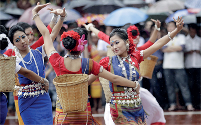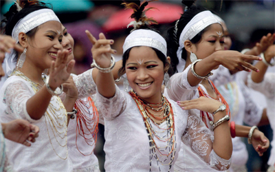 فتيات في العاصمة البنغالية دكا يؤدّين مجموعة من الرقصات التقليدية، احتفاءً باليوم العالمي للسكان الأصليين أمس.