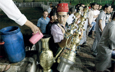 عراقي يبيع شراب «العرقسوس» التقليدي، في حي الأعظمية بالعاصمة بغداد.