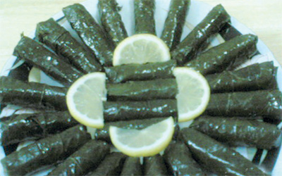 10- يوضع الصحن فوق ورق العنب المحشو، كي لا تنفتح أوراق العنب.