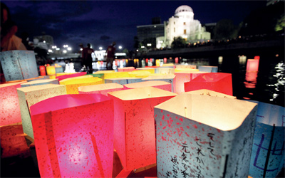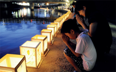 يجتمع أهالي مدينة ناجازاكي اليابانية على نهر موتوياسو، في تقليد سنوي، يصلي فيه الأهالي على أرواح ضحايا القنبلة الذرية التي حولت المدينة إلى رماد، خلال الهجمات التي أغارت على المدينة في الحرب العالمية الثانية، فتنتشر الفوانيس الورقية الملوّنة على امتداد النهر، حاملة معها أمنيات السكان الملوّنة ومحبتهم لضحايا الحرب خلال الذكرى الـ66 للهجمات.