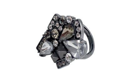 خاتم ذو تصميم مميز مزين بمجموعة من الاحجار متفاوتة الاحجام بـ 399 درهما . يتوافر في كل من " أبراج الامارات " و"مردف سيتي سنتر" بدبي .