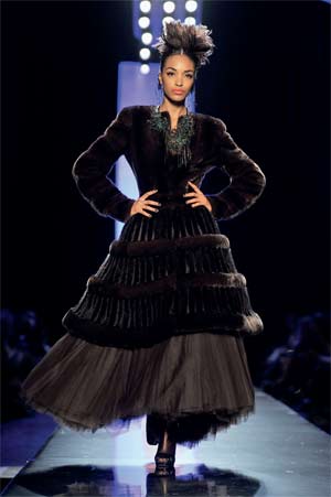 من الباليه الأشهر في تراث الموسيقى العالمية، كحال «الجمال النائم»، و«كسارة البندق»، رسم غولتيير لوحته الخاصة، شديدة الفخامة، الغنية في تفاصيلها المترفة، وعلى الرغم من ذلك الكم من الفانتازية المتكلفة التي عززها المصمم في إكسسوارات الشعر وتسريحاته، وتلك اللمسة الفرنسية الفنية للماكياج المغوي، فإن ذلك لم ينتقص من المجموعة تميزها الشديد وأناقتها الأوروبية، التي حملت لمسات غنى شرقي، من عباءات مخملية تزيّنت بالكريستال والأحجار، وأخرى بدت أقرب إلى العباءة الخليجية السوداء، مزيّنة بقلنسوة غطت الرأس، كل ذلك، مع مجموعة كبيرة من الفساتين الناعمة، والتنانير المتموجة الراقصة بانتفاخها الاستعراضي، وأطقم التاييرات من سترات وتنانير، وقمصان وسراويل، ومعاطف، في تنوع شديد ربما، لكن لم يخرج عن خط واضح وبصمة متطرفة جمعت تصاميم المجموعة المكوّنة من 60 قطعة.