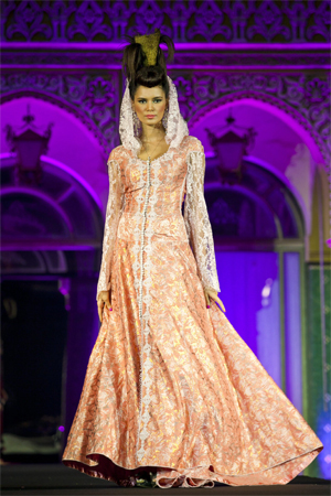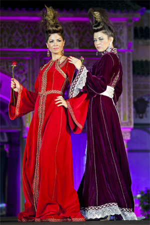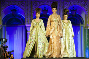 عارضات يرتدين «القفطان» الذي يمثل الزي التقليدي المغربي، خلال عرض أزياء على هامش أسبوع الصناعة التقليدية في العاصمة الرباط الذي اختتم أمس، وعرضت خلاله خمس دور أزياء مجموعات من القفطان المغربي التقليدي.