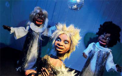 مجموعة من الألعاب الخشبية الممثلة لمشاهير موسيقى الرولينغ ستون، تعرض في متحف مسرح الألعاب الخشبية المعروف باسم «الصندوق»، إذ يحتفل المتحف حالياً بمرور 10 سنوات على افتتاحه في مدينة أوغسبيرغ الألمانية، من خلال عرض مجموعة من مشاهير العالم.