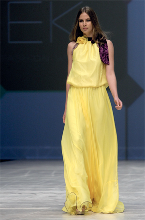 قدمت المصممة الأسترالية إيستون بيرسون التي حضرت خصوصاً إلى دبي للمشاركة في أسبوع دبي للموضة لهذا الموسم، مجموعة شديدة التميز والابتكار، تكشف الحرفية والفهم العالي لما تعنيه تصاميم الملابس الجاهزة، المعروفة باسم «ريدي تو وير»، مبتكرة مجموعة تميزت بوفرة الألوان والطبعات التي مالت نوعاً ما إلى الإثنية، بين قمصان وسراويل أقصر من الكاحل ومعاطف قطنية خفيفة، وتنانير، وفساتين قطنية ناعمة تفاوتت بين الواسعة ذات الكسرات العديدة، وبين تلك المنسدلة، أو السادة التي تأطرت بالطبعات الإثنية المستوحاة من ثقافة القبائل الأسترالية الهندية، إضافة إلى القفطانات الحريرية الخفيفة التي تميزت بطبعاتها شديدة الابتكار واللمسات اللماعة للترتر التي تكحلت بها بعض تلك الخطوط المكونة للطبعات.